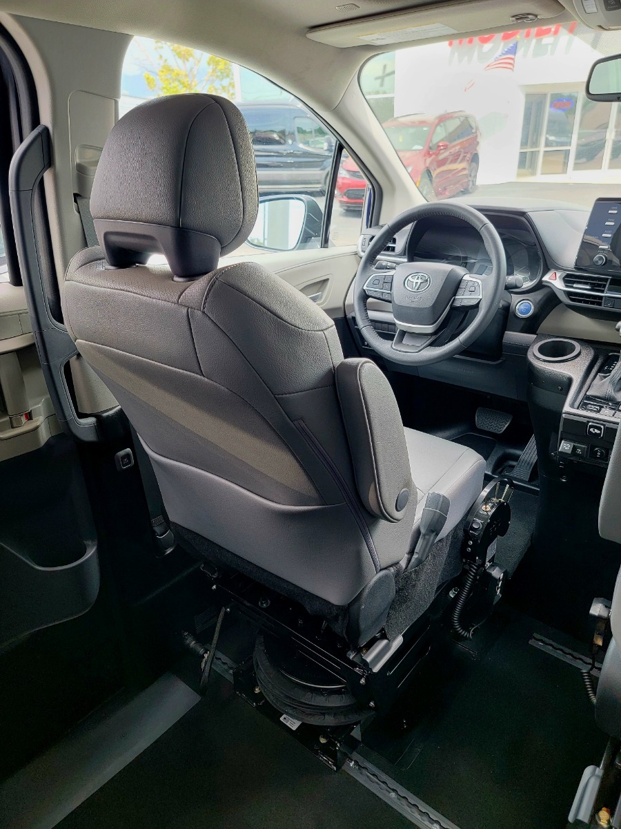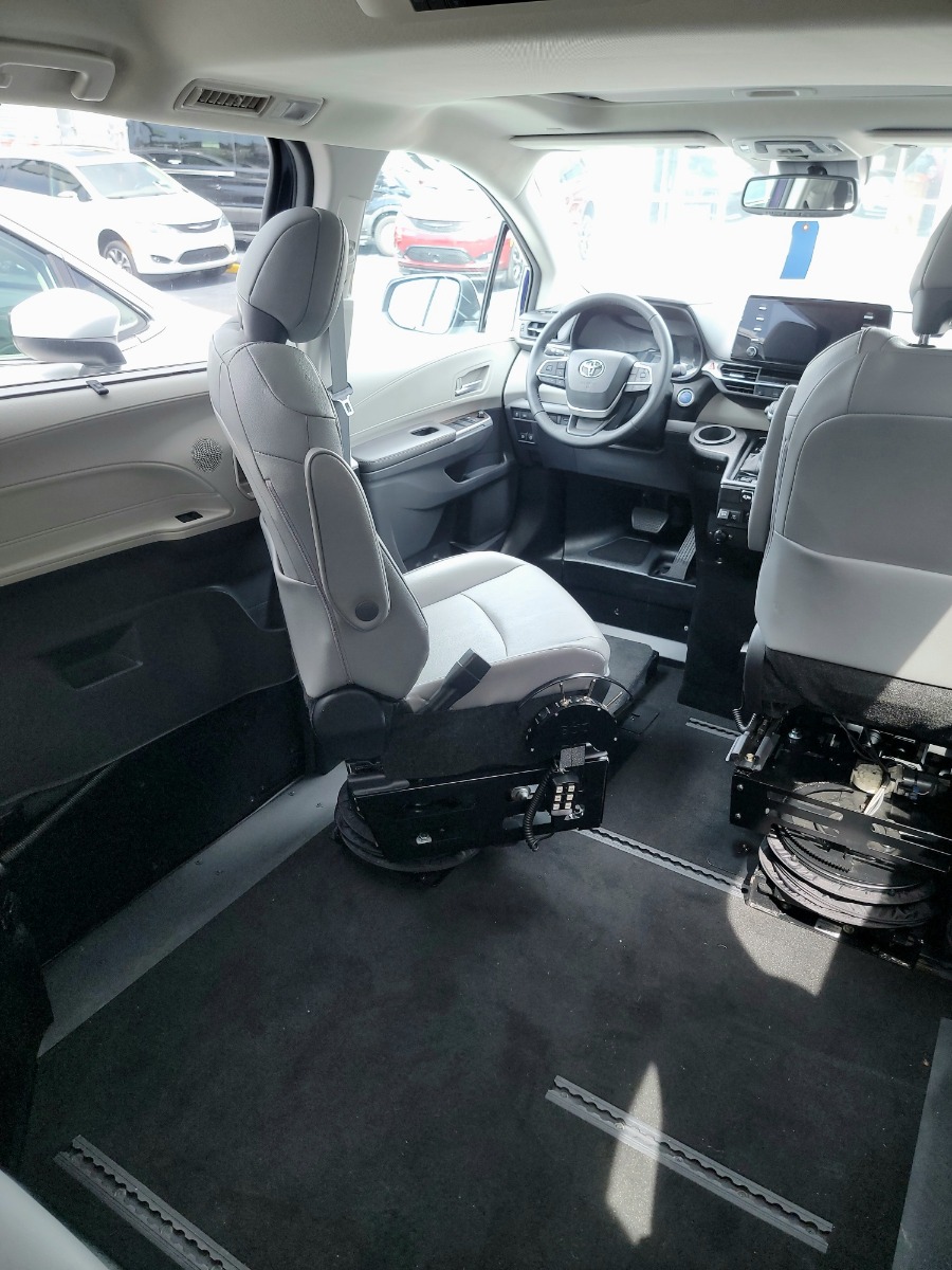 A driver transfer seat is a specialized seat mechanism that facilitates the transfer of a wheelchair user into the driver's seat. This system allows the original vehicle seat to rotate, extend, and adjust in height well beyond what it can from the factory, enabling a smoother transition from the wheelchair to the driver's seat. The seat can then be repositioned behind the steering wheel for driving.